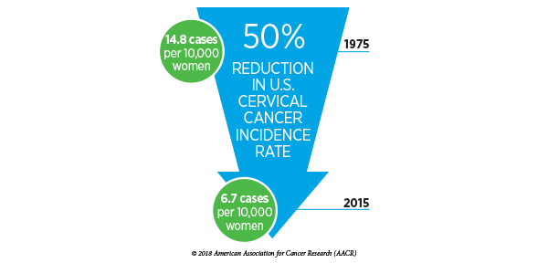 One of the most important strides forward was the development of the Pap test. Its widespread use for cervical cancer screening is credited with driving down the U.S. cervical cancer incidence rate. The latest National Cancer Institute (NCI) data show that the U.S. cervical cancer incidence rate fell 50 percent from 1975 to 2015.