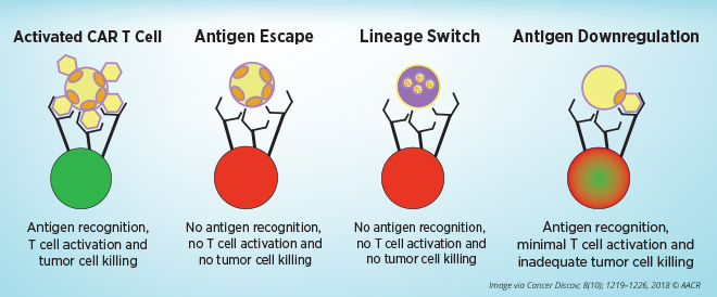 Mackall noted the mechanisms of resistance to CAR T-cell therapies that target CD19 present on blood cells, including tumor evasion, T-cell failure, and T-cell exhaustion.