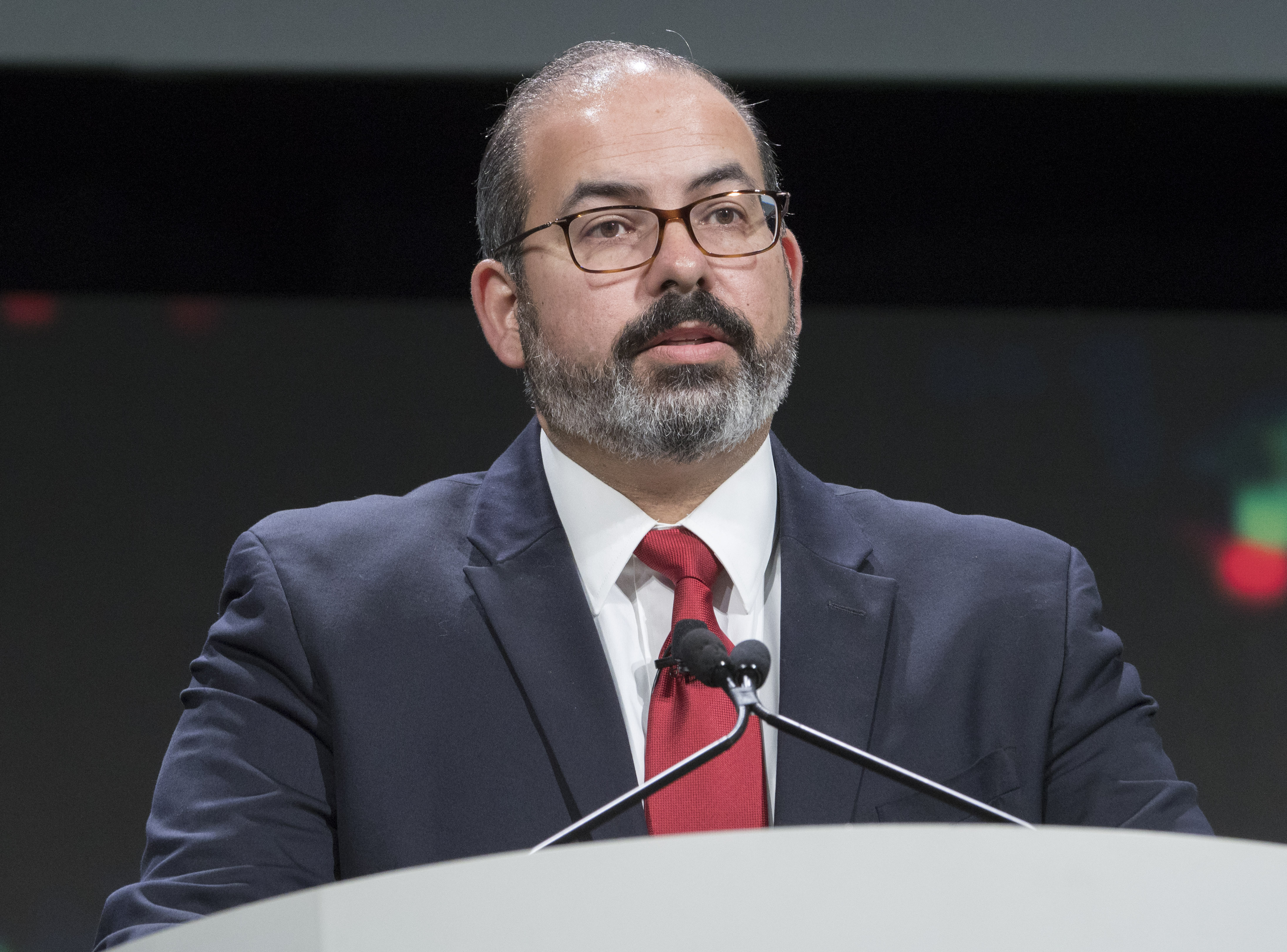 Carpten invited to the podium the first two speakers of the session, physicist Peter Kuhn, PhD, and physician Jorge J. Nieva, MD.