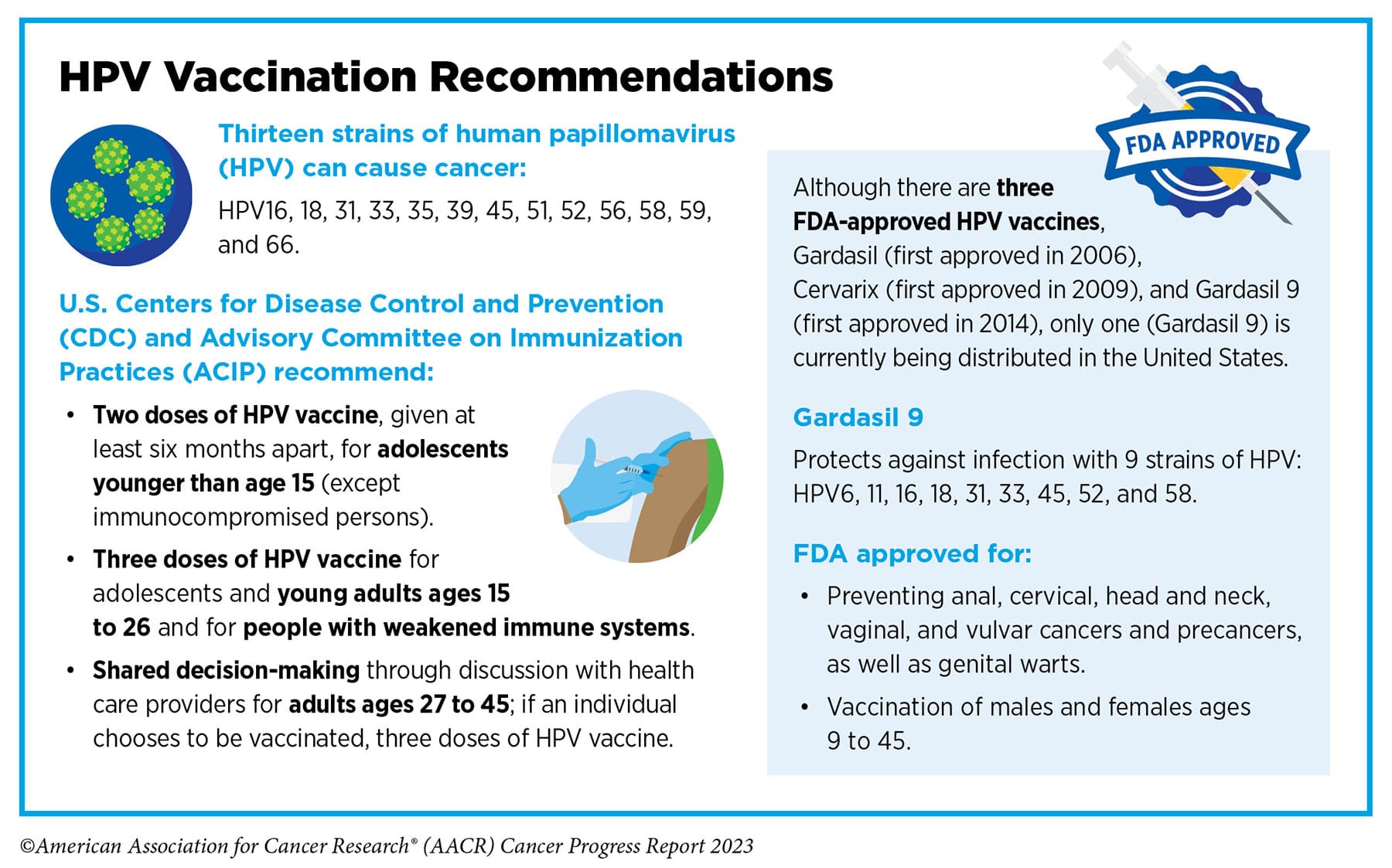 Fifty-six percent did hear about the HPV vaccine, yet only 19% said a provider had recommended it to them. Currently, the Centers for Disease Control and Prevention recommends HPV vaccination for adolescents around ages 11 or 12 and even encourages the vaccination of young adults up to age 26 if they did not receive it when they were younger. The U.S. Food and Drug Administration has approved the HPV vaccine for people ages 9 to 45.