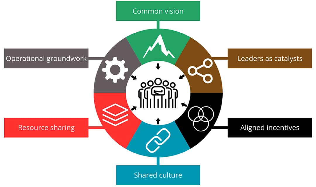 Pointing to massive projects such as the Human Genome Project and The Cancer Genome Atlas, which involved thousands of researchers across multiple disciplines, Boehm and Jacks defined six “Hallmarks of Cancer Collaboration”—a play on the foundational Hallmarks of Cancer—that they “believe are the ingredients to propel research teams to achieve new levels of productivity and impact in the modern era of cancer science;” these hallmarks include a common vision, leaders as catalysts, aligned incentives, a shared culture, resource sharing, and a strong operational groundwork.