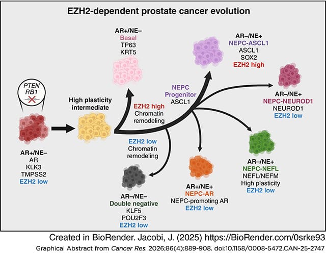 Significance: EZH2 suppression diversifies prostate cancer lineage plasticity, which has implications for EZH2-targeted therapies that are being evaluated for prostate cancer treatment.