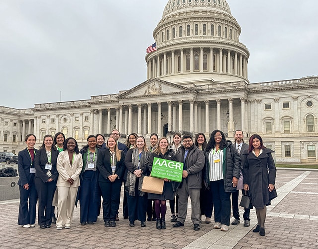 On March 18, 20 Associate Members from the American Association for Cancer Research (AACR) gathered in Washington, D.C. for the 11th annual AACR Early-career Hill Day. As they waited outside the Capitol in long security lines during a cold, brisk, windy morning, they found warmth in the camaraderie of being around other students, trainees, and early-career researchers prepared to meet with congressional representatives or their staff to convey the crucial need to invest in the future of cancer research.