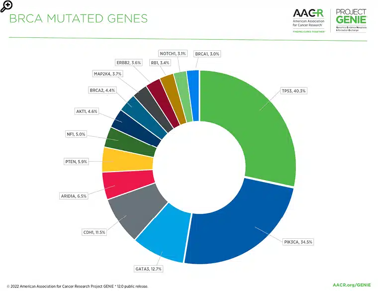 Figure 1: The most commonly mutated genes in the BRCA AACR Project GENIE® registry in release 12.0-public.