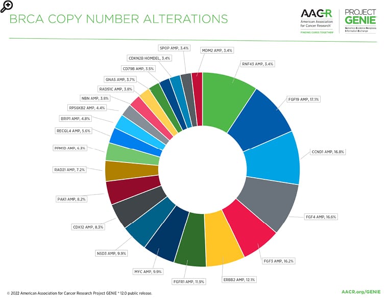 Figure 3: The most common copy number alterations in the BRCA AACR Project GENIE® Registry in release 12.0-public.