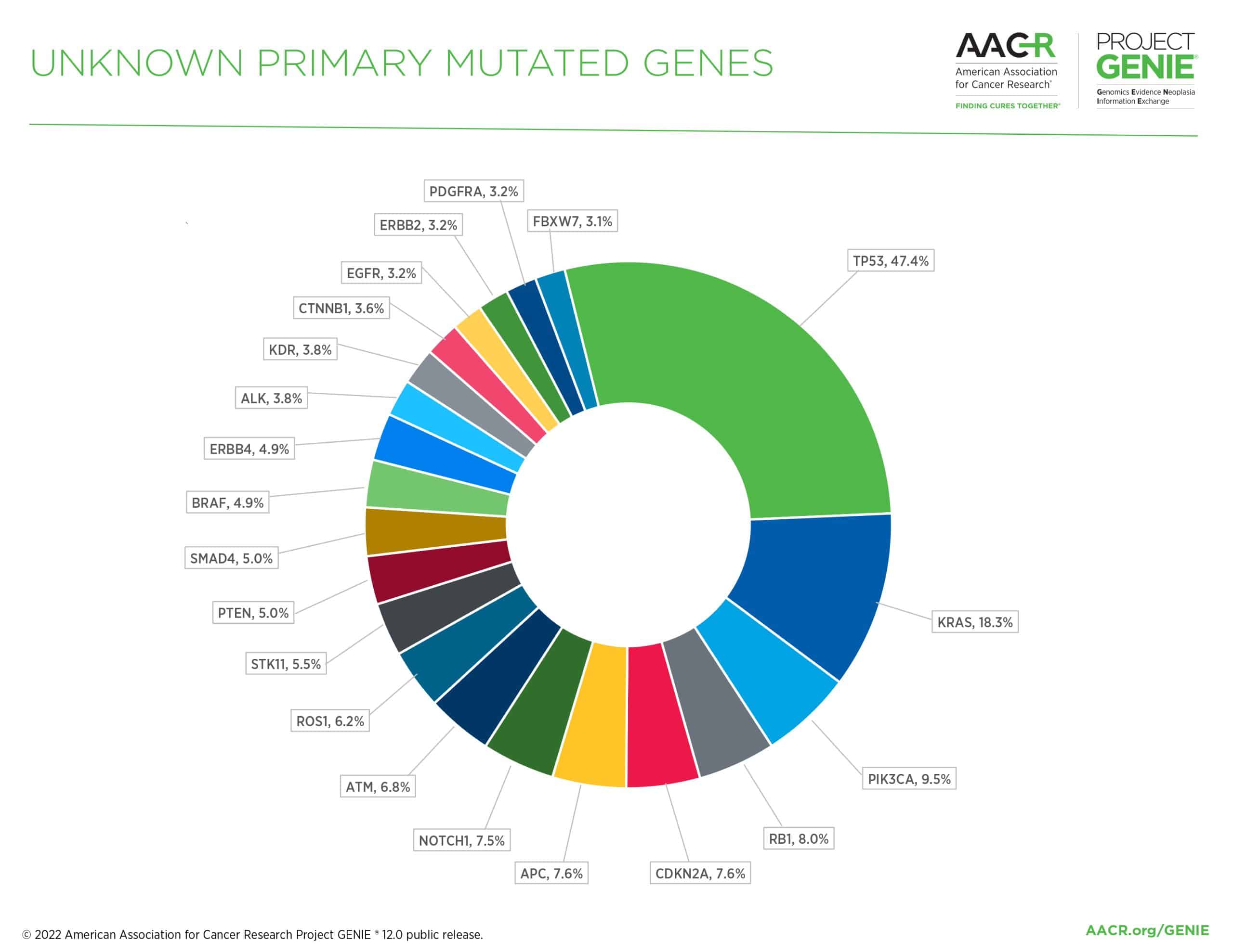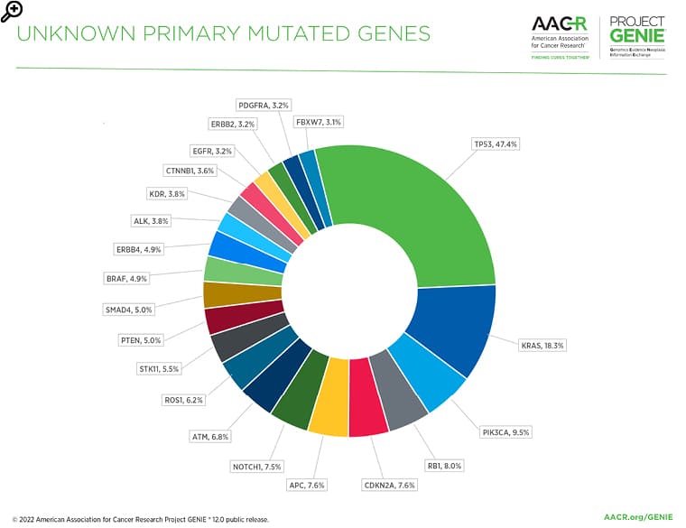 Figure 1: The most commonly mutated genes in cancer of unknown primary in the AACR Project GENIE® Registry in release 12.0-public.