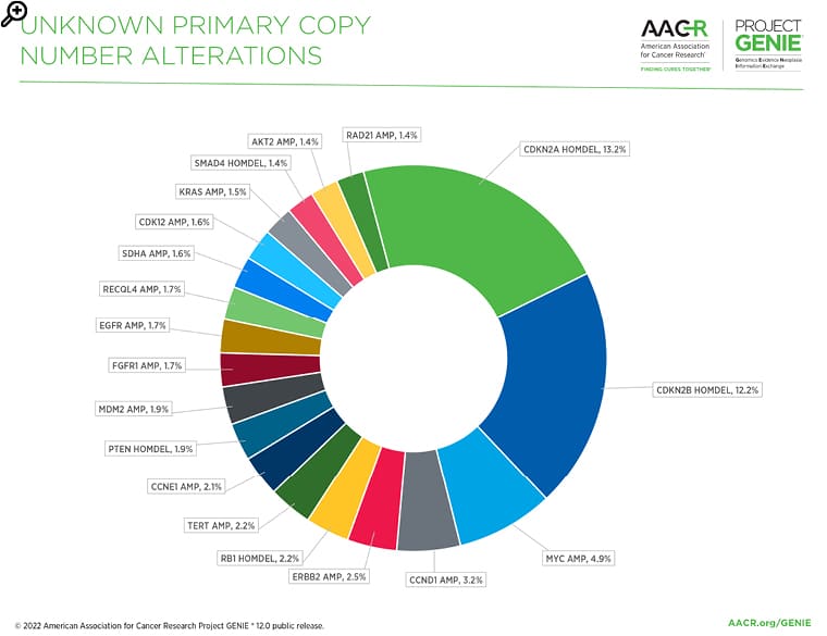 Figure 3: The most common copy number alterations in the cancer of unknown primary in the AACR Project GENIE® Registry in release 12.0-public.