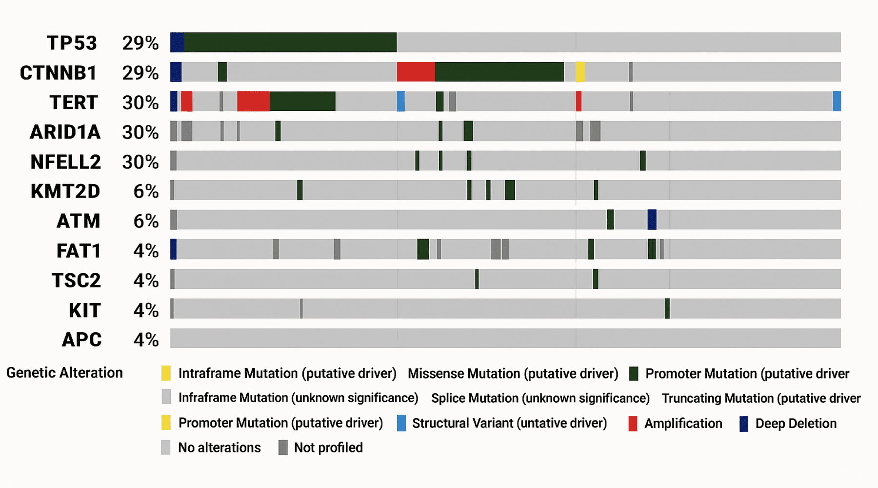 October is hepatobiliary cancer awareness month. The AACR Project GENIE 18.0 public release provides a detailed look at the genomic landscape of hepatobiliary cancers, offering valuable insights. The registry includes 1,176 patients and 1,251 samples, helping to deepen our understanding of these rare cancers. TP53, CTNNB1, TERT, ARID1A and NFE2L2 are the most frequently mutated genes among other key mutations.