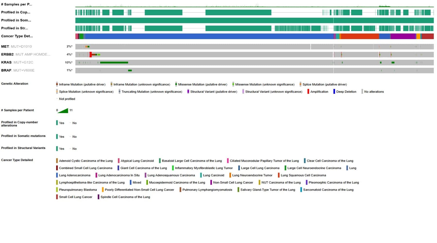 These data highlight several clinically actionable alterations, including BRAF V600E and KRAS G12C mutations, ERBB2 amplification, as well as NTRK1, NTRK2, NTRK3, and RET fusions.