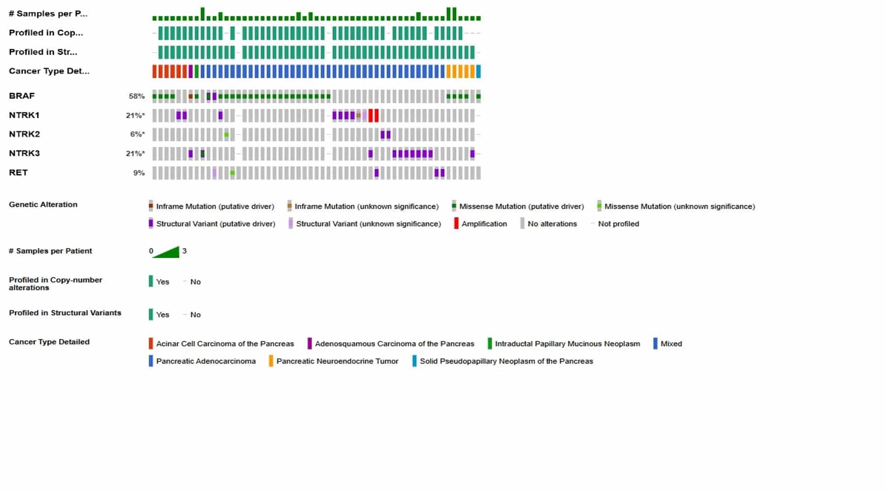 The data below highlight several clinically actionable alterations, including the BRAF V600E mutation and fusions in NTRK1, NTRK2, NTRK3, and RET.