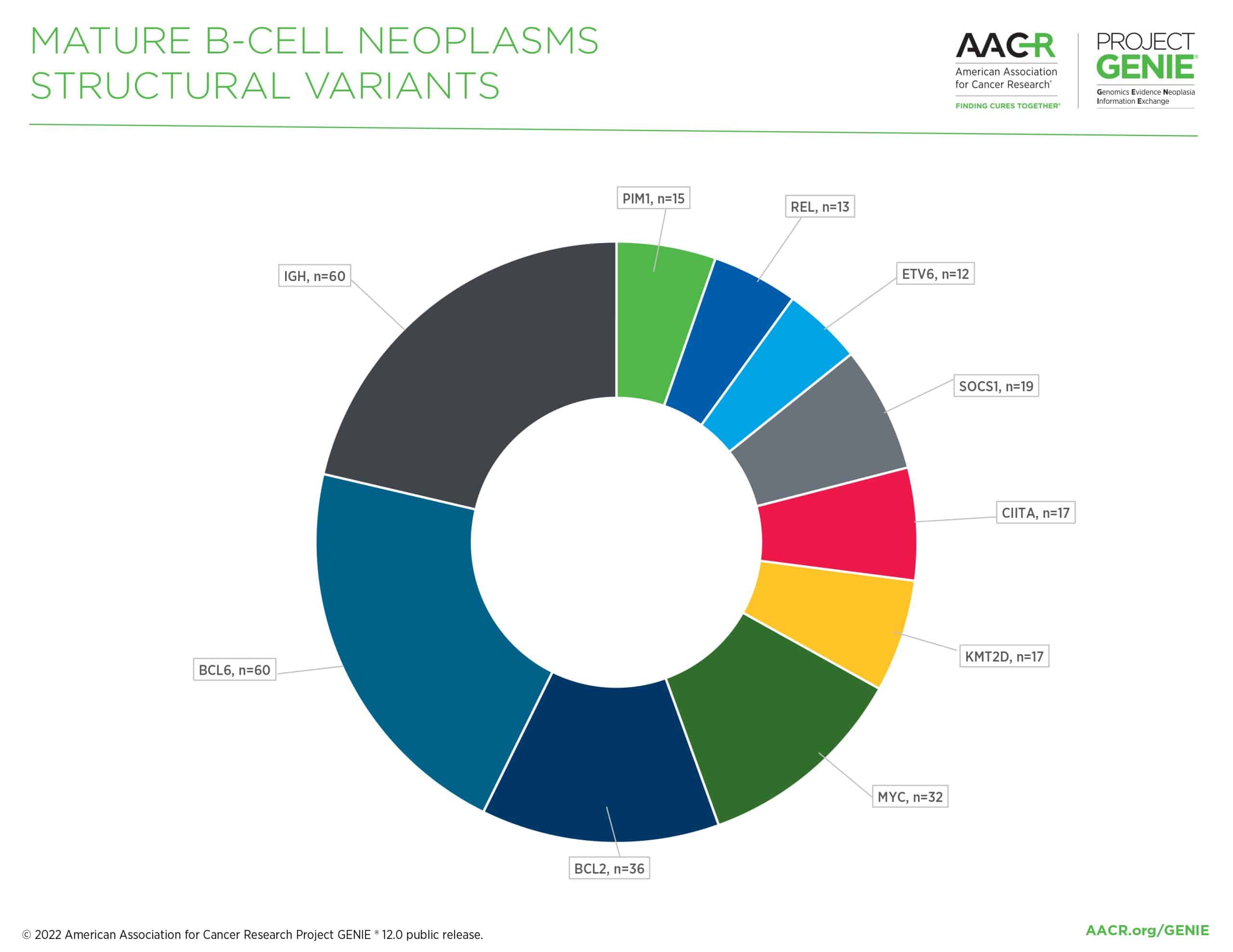 Figure 2: The most common gene fusions/structural variants in Mature B-Cell Neoplasms in the AACR Project GENIE® Registry in release 12.0-public
