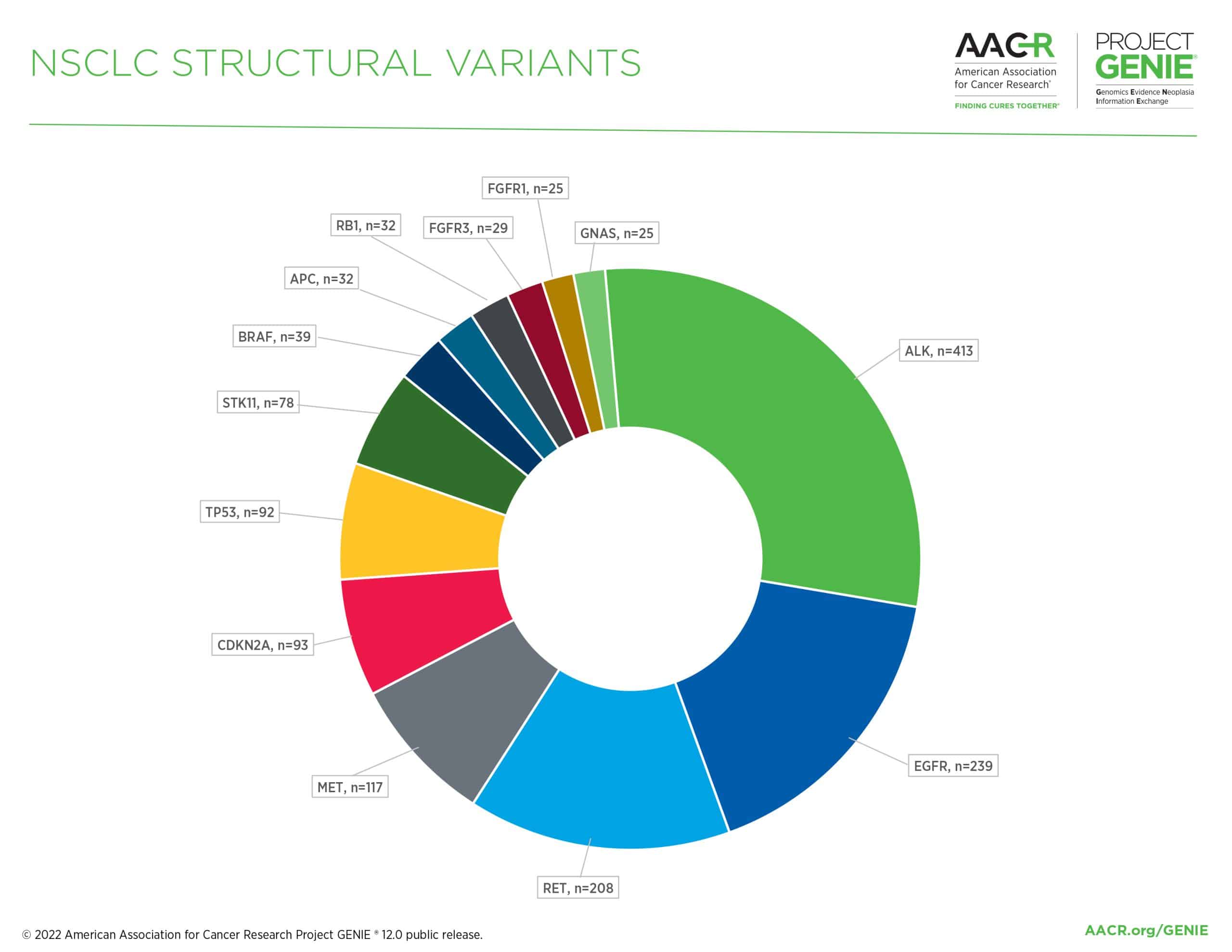 Figure 2: The most common gene fusions/structural variants in non-small cell lung cancer in the AACR Project GENIE® Registry in release 12.0-public.