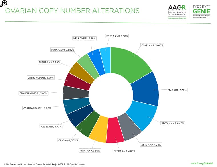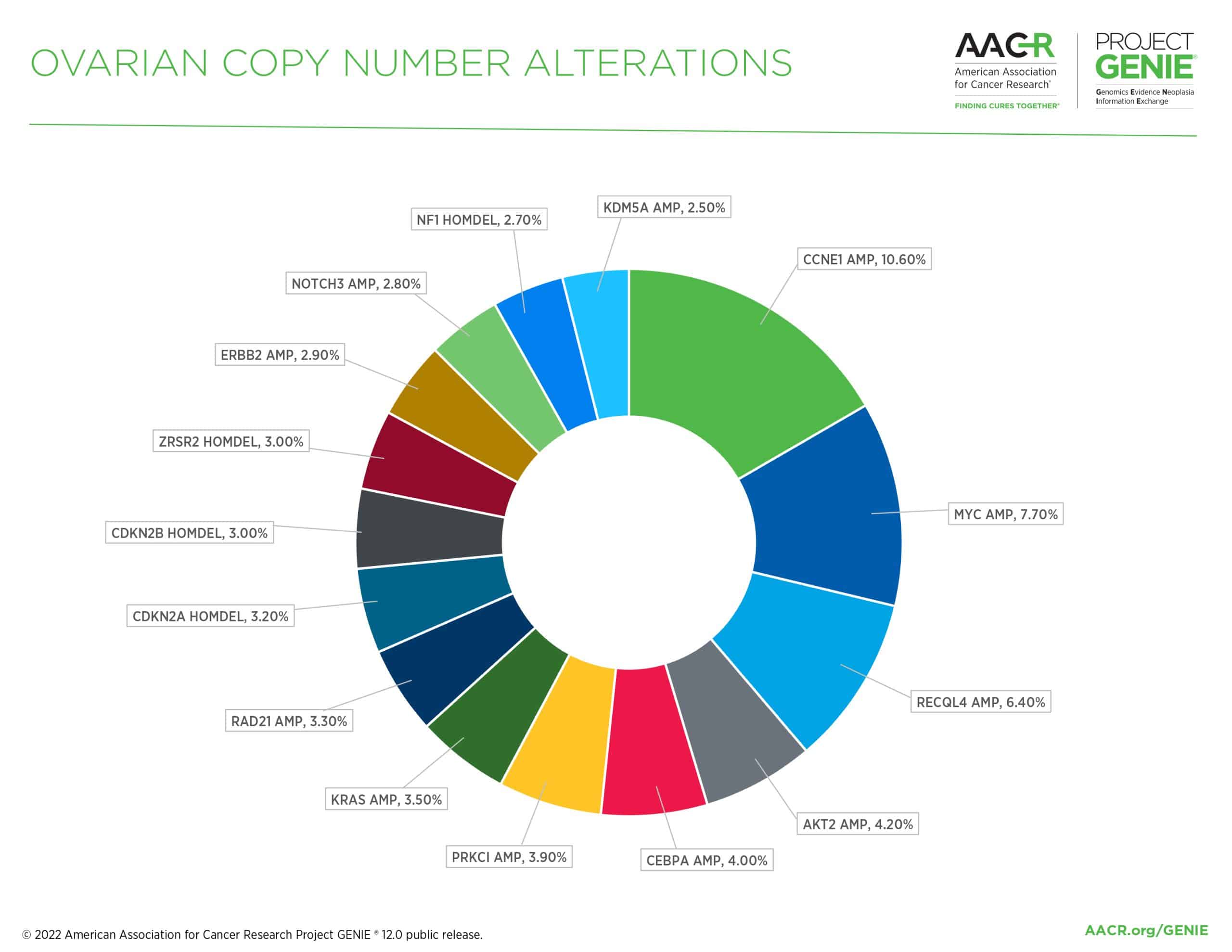 Figure 3: The most common copy number alterations in ovarian cancer in the AACR Project GENIE® Registry in release 12.0-public