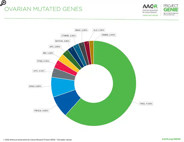Figure 1: The most commonly mutated genes in ovarian cancer in the AACR Project GENIE® Registry in release 12.0-public