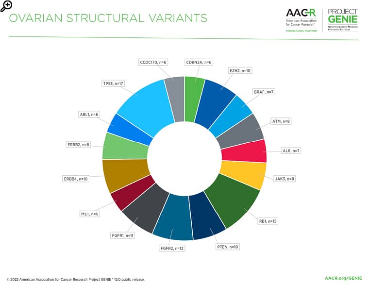 Figure 2: The most common gene fusions/structural variants in ovarian cancer in the AACR Project GENIE® Registry in release 12.0-public